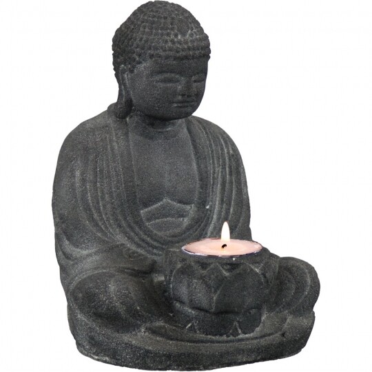 Volcanic Stone Statue & T-light Holder Buddha Charcoal