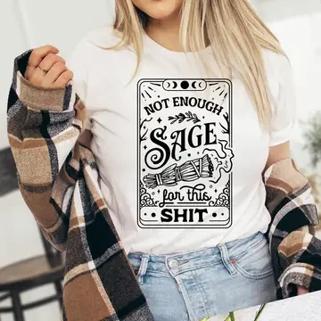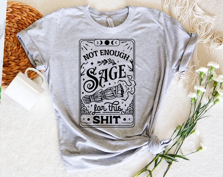 This "Not Enough Sage For This Sh*t - Tarot Witch T-Shirt" sounds like a fun and unique addition to anyone's wardrobe! Here’s a summary of the product details: